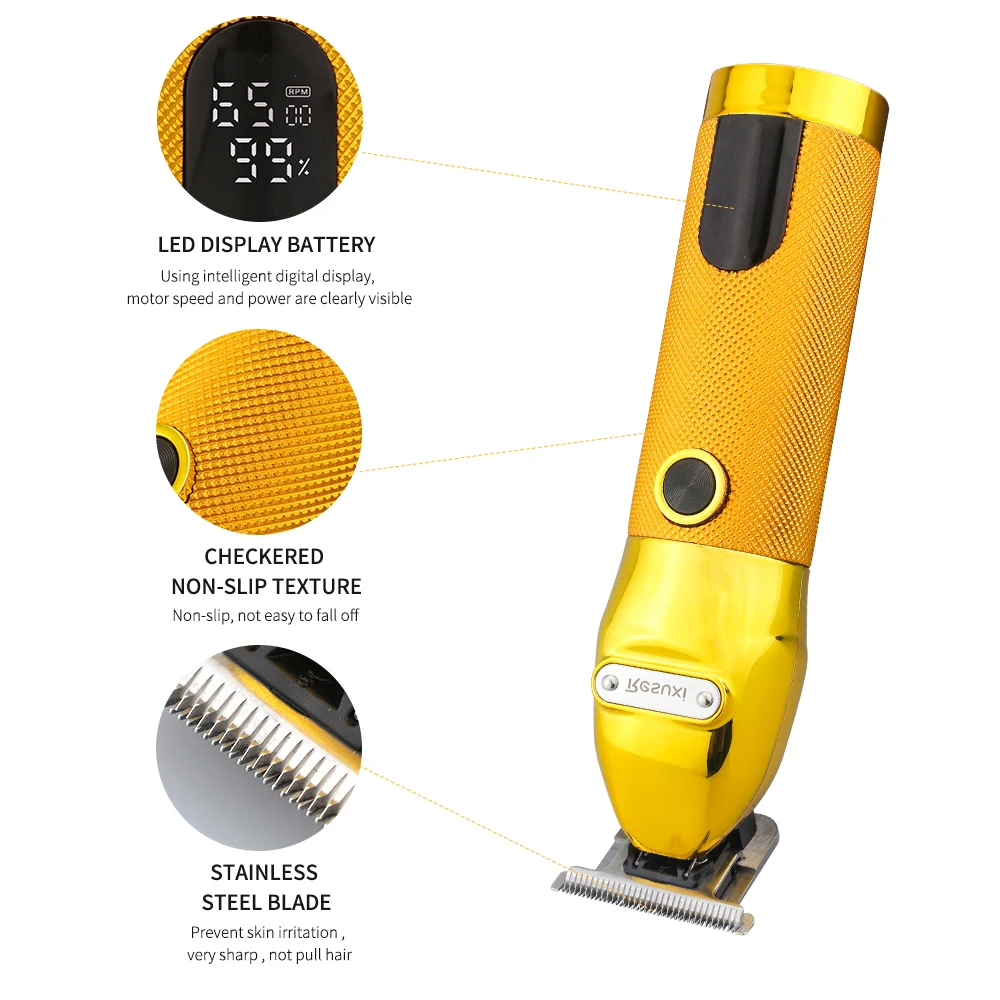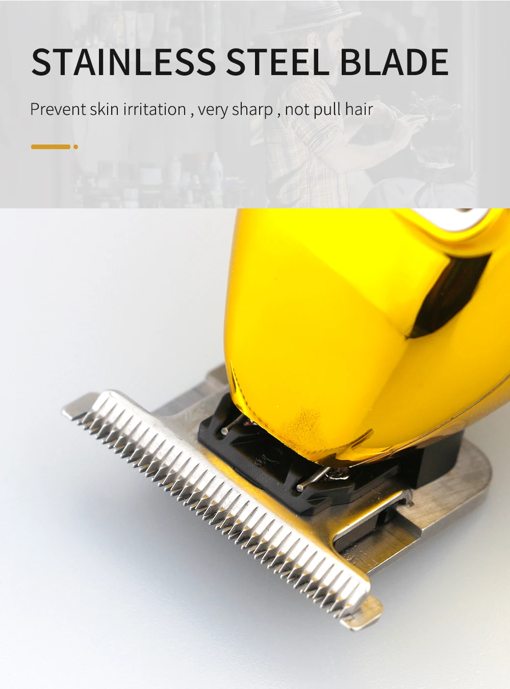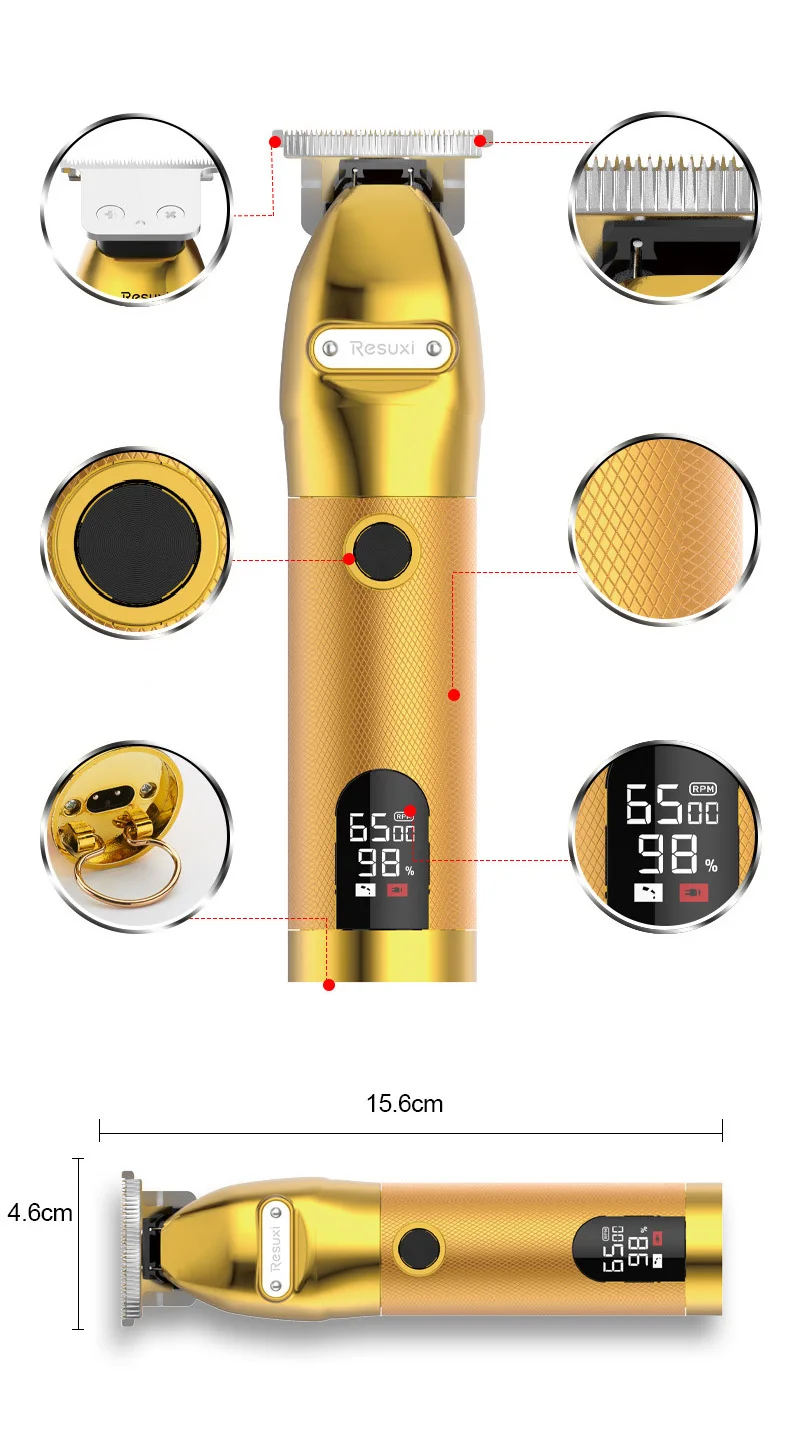 Описание: Высококачественные лезвия из нержавеющей стали и острые лезвия используются для гладкой резки. Сильная мощность, не легко тянуть волосы, не застревает. Может удовлетворить различные потребности в изящном моделировании, такие как масляная голова, обрезка, резьба и создание классической ретро-масляная голова. Взаимозаменяемая расческа для позиционирования может свободно контролировать предельную длину. Низкий уровень шума и высокая мощность. Универсальное напряжение. Подходит для парикмахерских и личных стрижек. Характеристики: Цвет: Золотой Напряжение: 5 В Мощность: 10 Вт Об/мин: 6000 Тип батареи: сменный Зарядка: USB или адаптер Аккумулятор: 1500 мАч Время зарядки: 180 минут Время работы: 3 часа