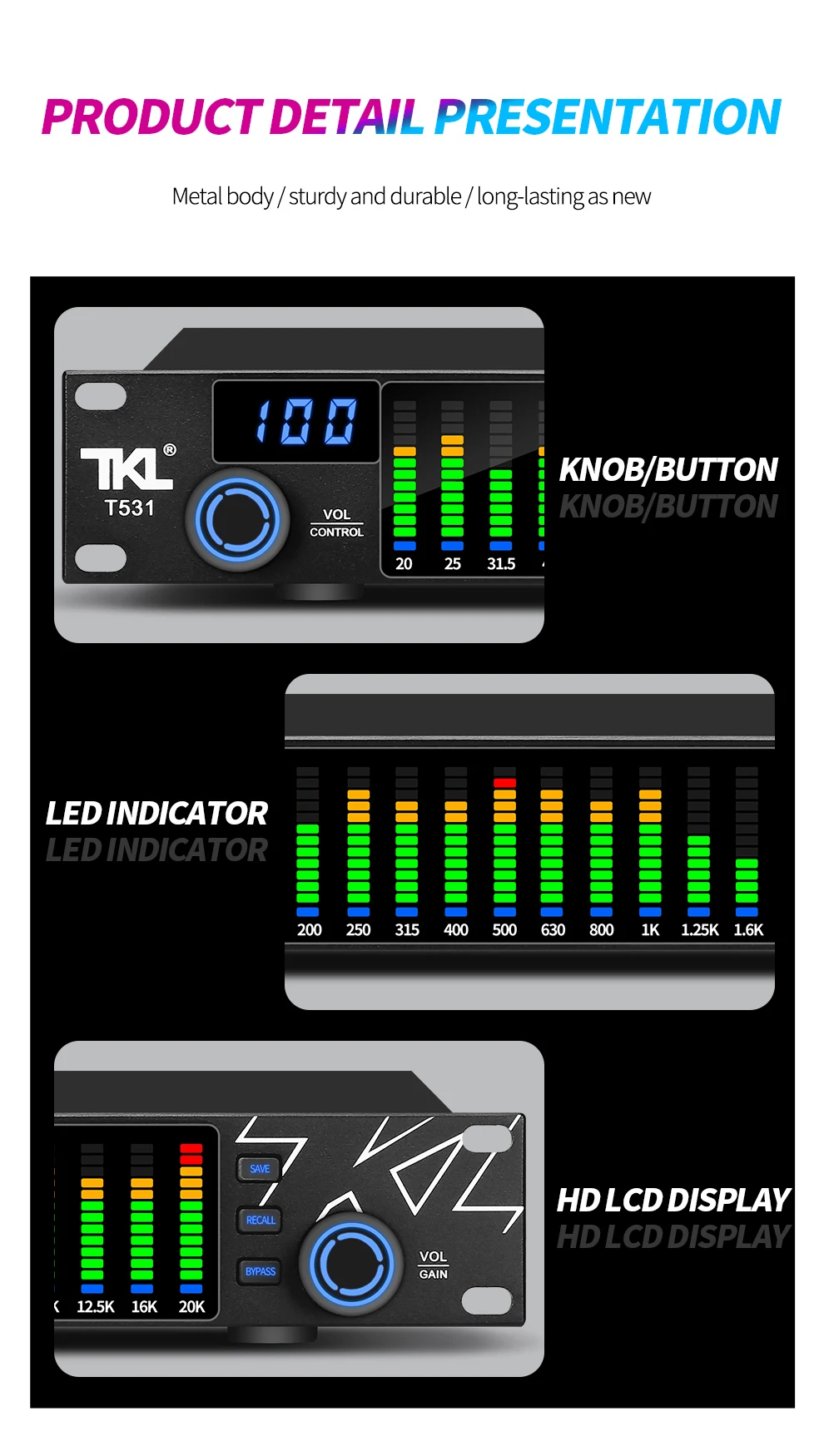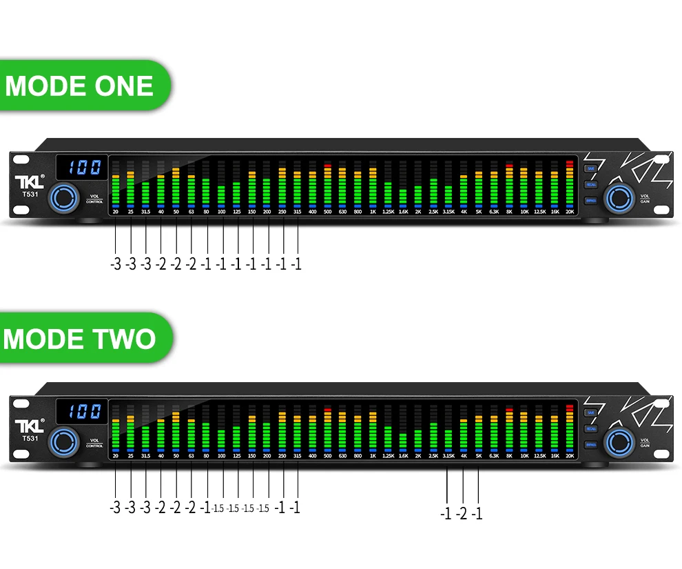 Каждый раздел с светодиодный спектра индикации, в режиме реального времени; Большие размеры 31-полоса частот точка абсолютная точность 99%