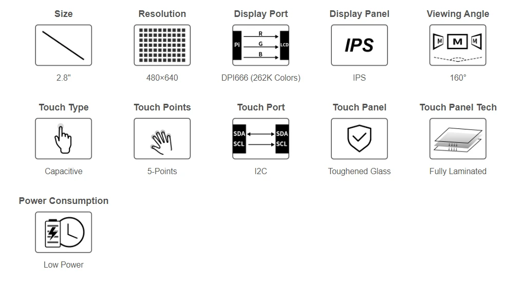 Ориентация дисплея по умолчанию, разрешение 480 × 640 (H×V). Измените конфигурацию программного обеспечения для отображения ландшафта.