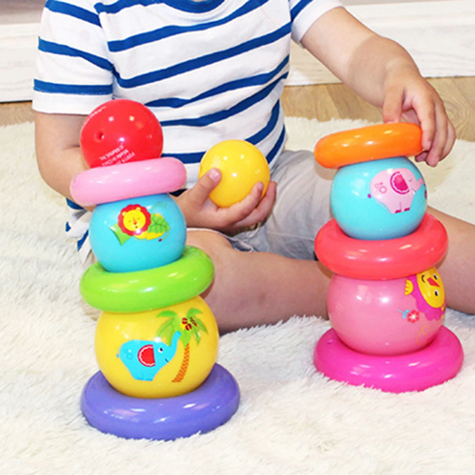 Ring Rainbow Tower Stacking Ball Set Kids Early Development Educational Toy