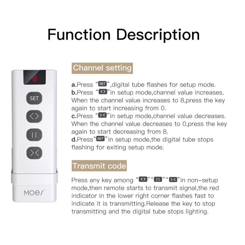 Пульт ДУ с частотой RF433 на 1,9 каналов создан для отдельного управления нашим переключателем для штор и модулем переключателя для штор гораздо проще благодаря максимальному количество, регулируемому в девять раз; легко достичь другую систему управления ко всему шторы для дома без помех после успешного соединения, особенно подходит для пожилых людей.