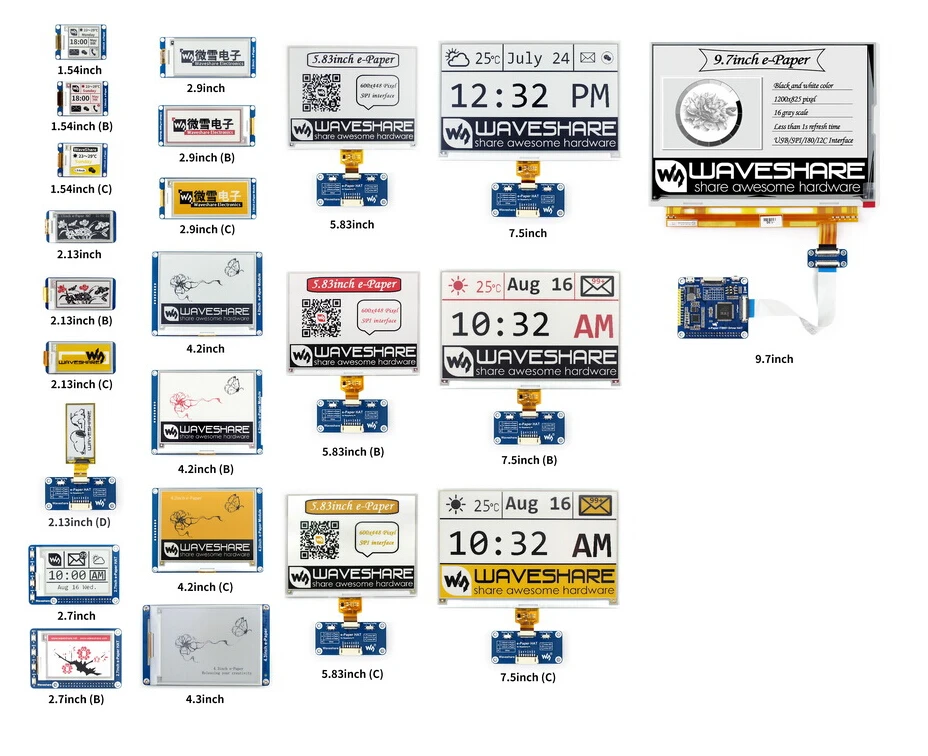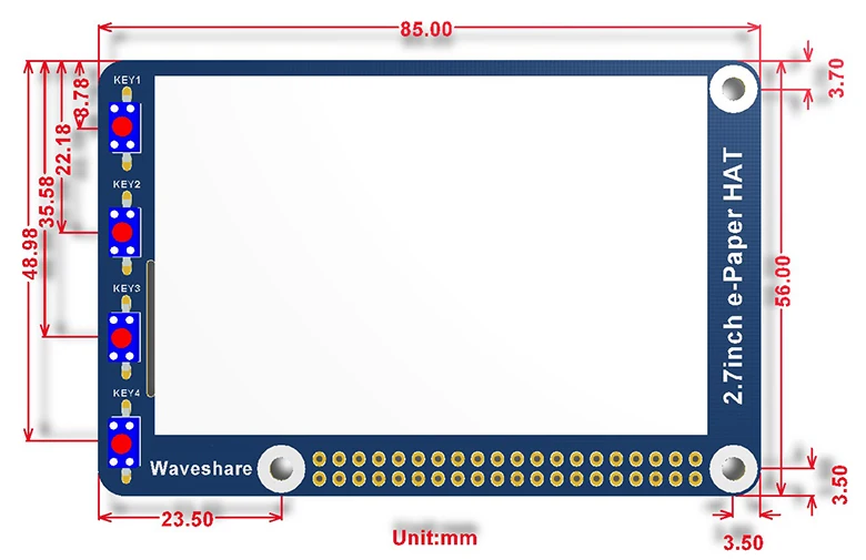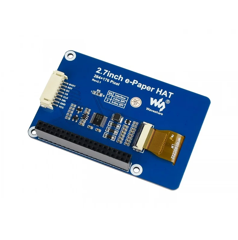 Это E-Ink display HAT для Raspberry Pi, 2,7 дюймов, 264x176 разрешение, со встроенным контроллером, общаясь через SPI интерфейс.