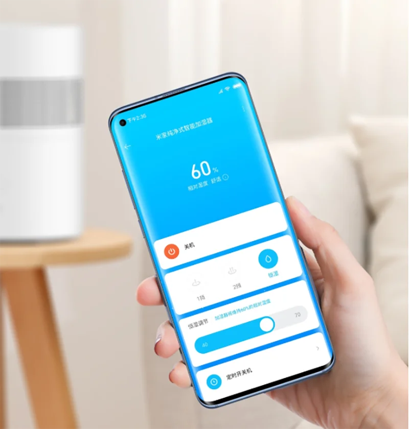 Через управление с помощью приложения Mijia увлажнитель можно управлять, когда нет дома, а влажность воздуха можно проверить в любое время
