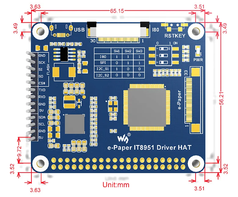 Это E-Ink дисплей шляпа для Raspberry Pi, 9,7 дюйма, разрешение 1200x825, со встроенным контроллером IT8951, общение через USB/SPI/I80 интерфейс, поддерживает частичное обновление.