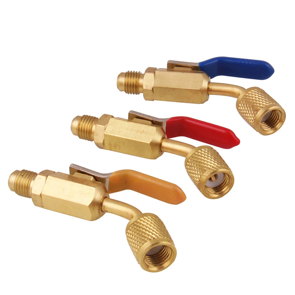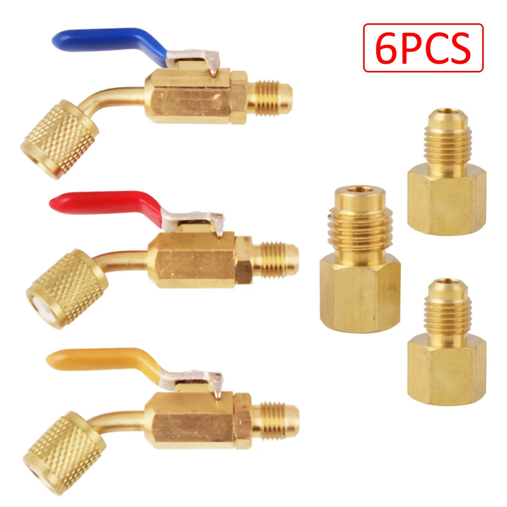 * 5. В комплект входит: вы получите 3 шт. переходников для вакуумных насосов R12 R22-R134A и 3 шт. адаптеров для холодильных резервуаров, а также компактный шаровой кран для кондиционирования воздуха под углом, легко сочетающийся и удобный для замены.