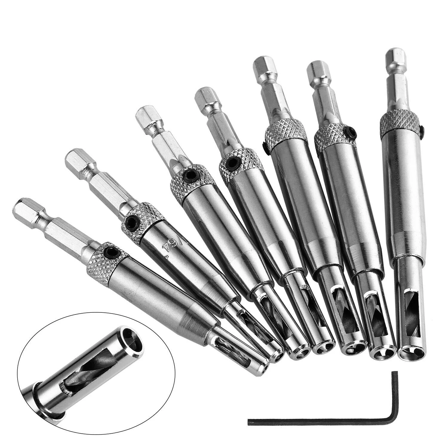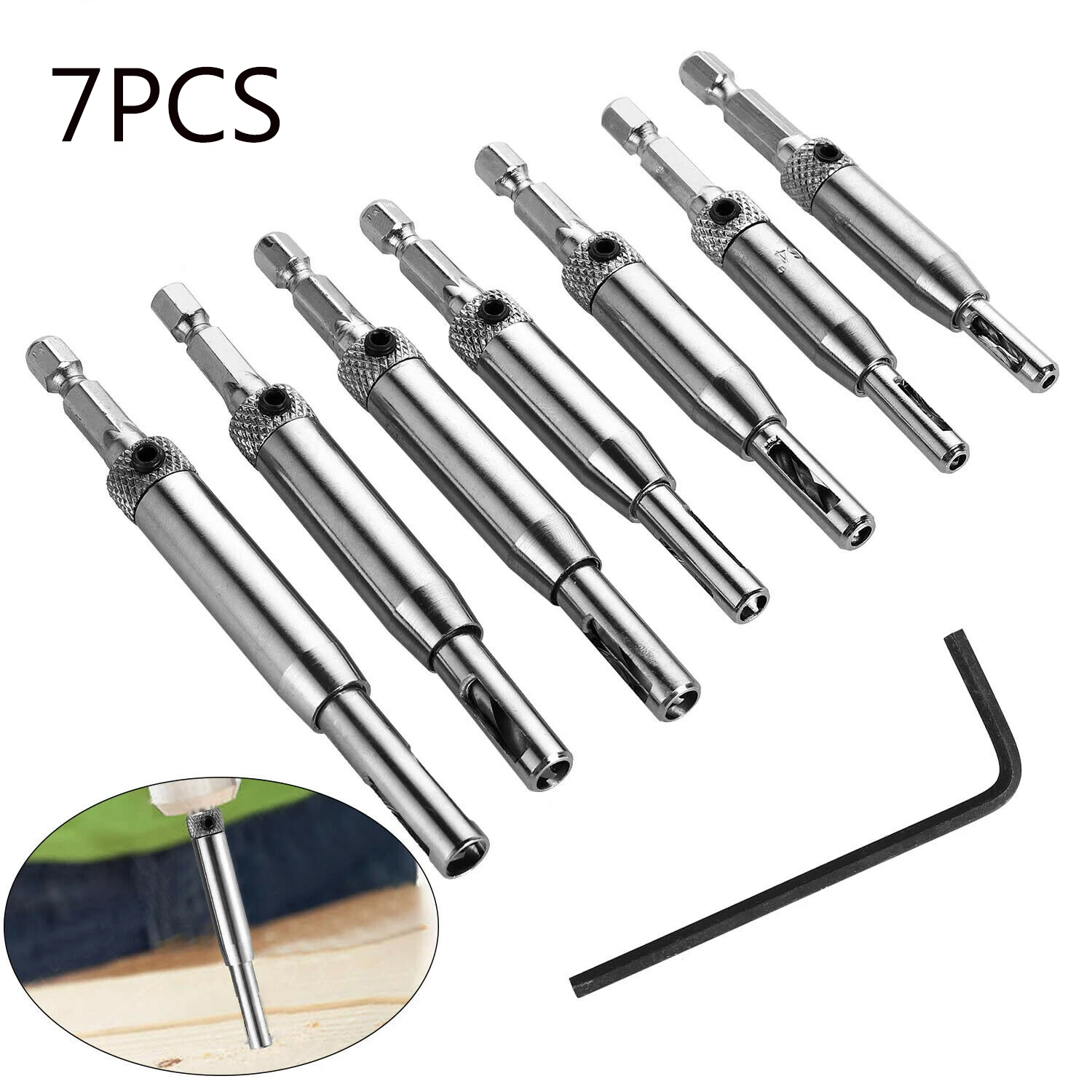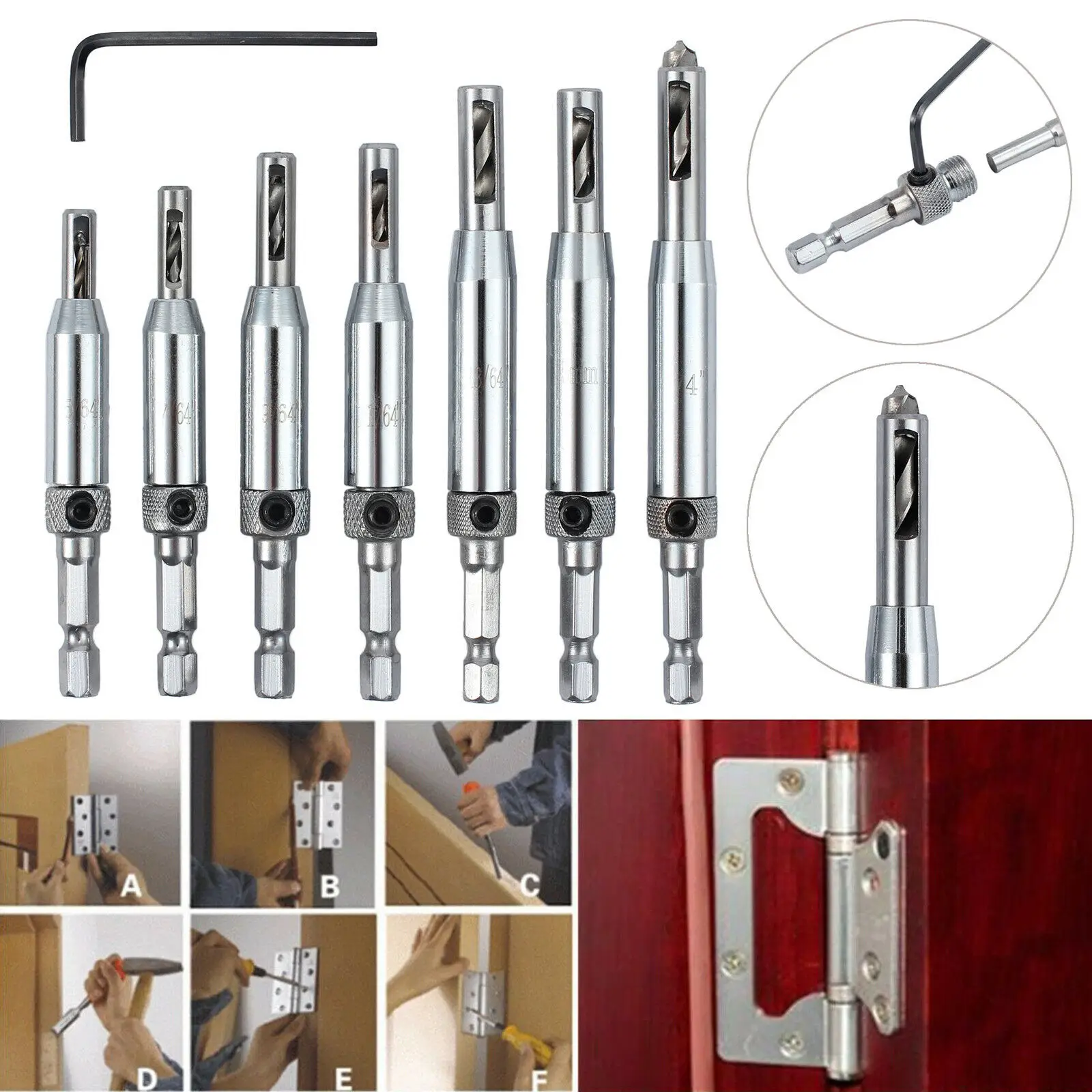 7 PCS HSS Self Centering Hinge Hardware Drill Bit Set Pilot Hole Guides Door Drawer