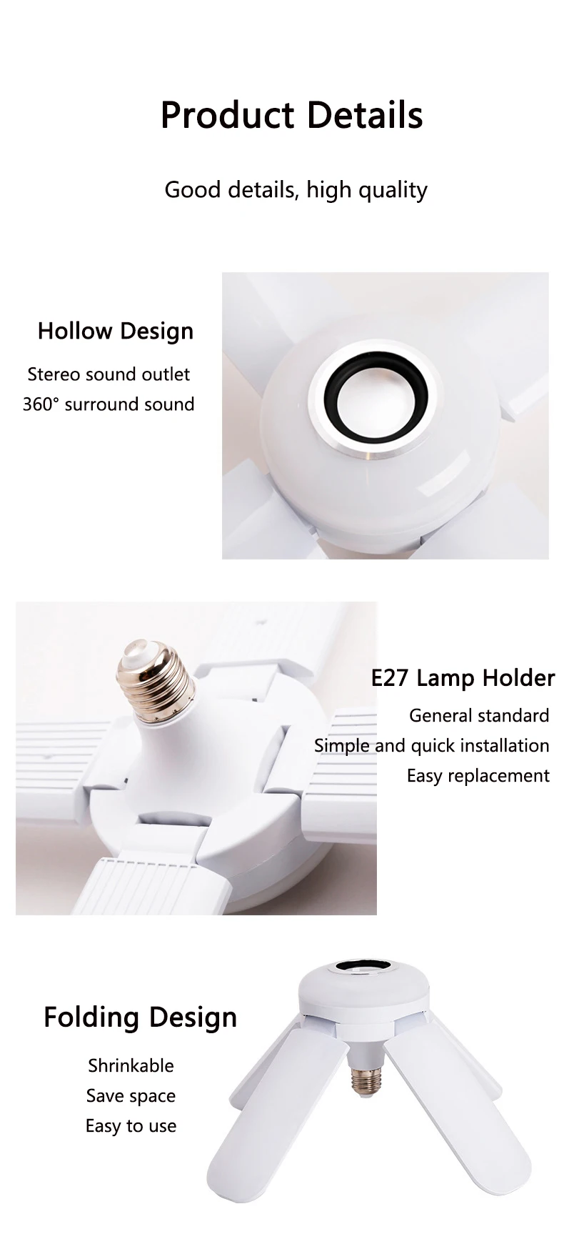 * Трехмерный полый дизайн. Стереозвук имеет объемные звуковые эффекты 360 °.