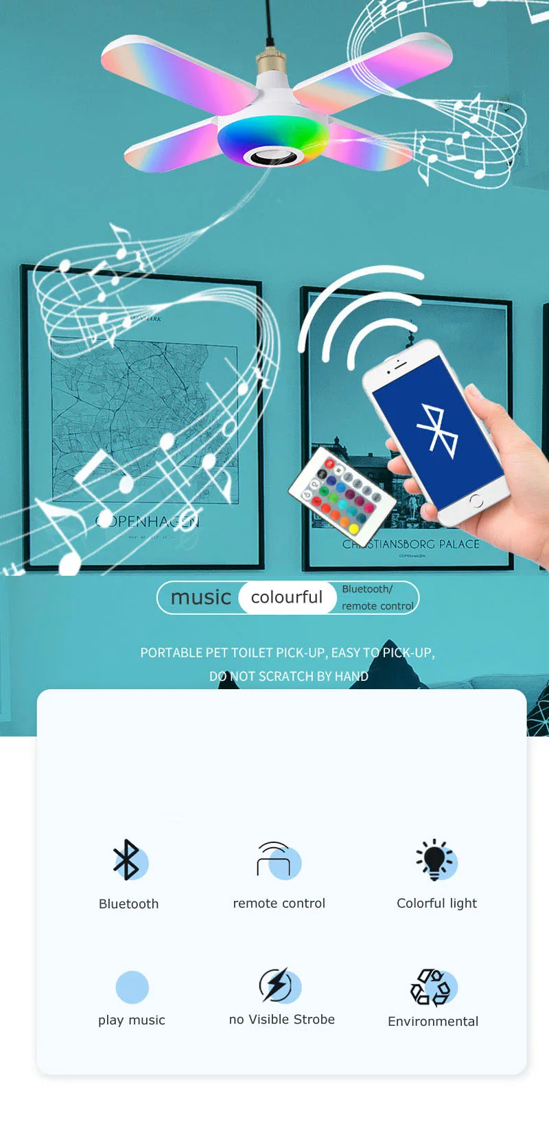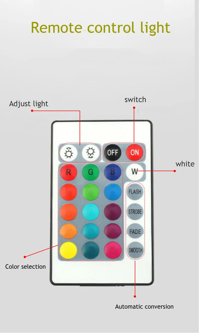 * Пульт дистанционного управления и управление bluetooth: можно управлять светодиодами через смартфон или планшет, подключив bluetooth, вы можете использовать его для воспроизведения любимой музыки и расслабления. Или изменить режим цвета с помощью прилагаемого пульта дистанционного управления.