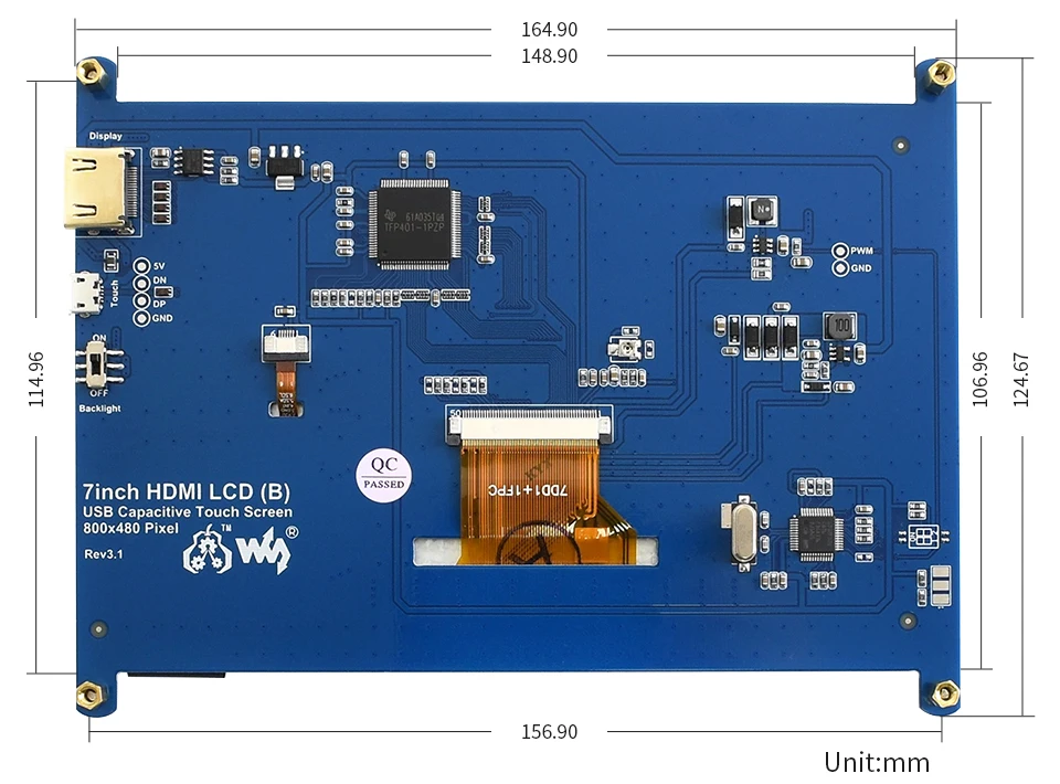 7 дюймов емкостный сенсорный экран Экран ЖК-дисплей (B), 800 × 480, HDMI, низкая Мощность потребления