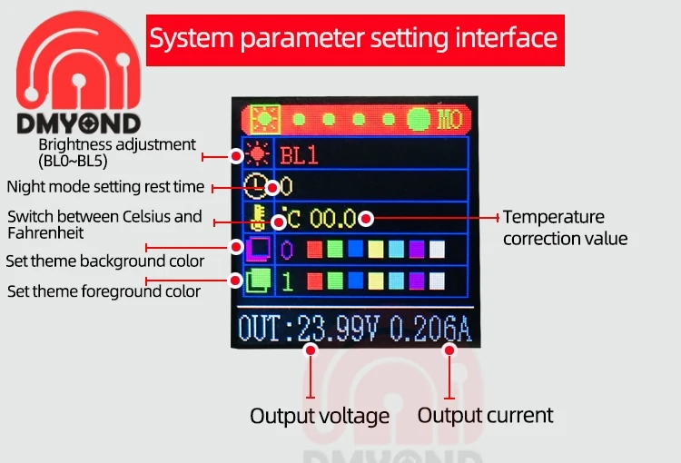 Выходная защита от перенапряжения OVP по умолчанию: 37 в, может быть установлен самостоятельно;
