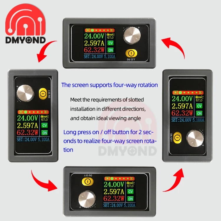 Короткое нажатие кнопки «Вкл/Выкл» для включения и выключения выходной мощности, длительное нажатие кнопки «Вкл/Выкл» в течение 2 секунд, Экран вращается и может поворачиваться на 360 ° в четырех направлениях.