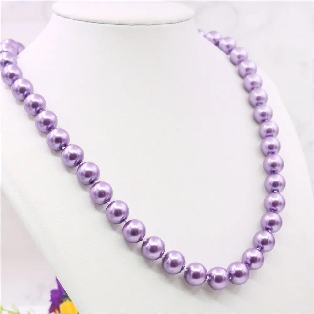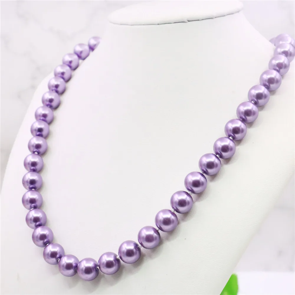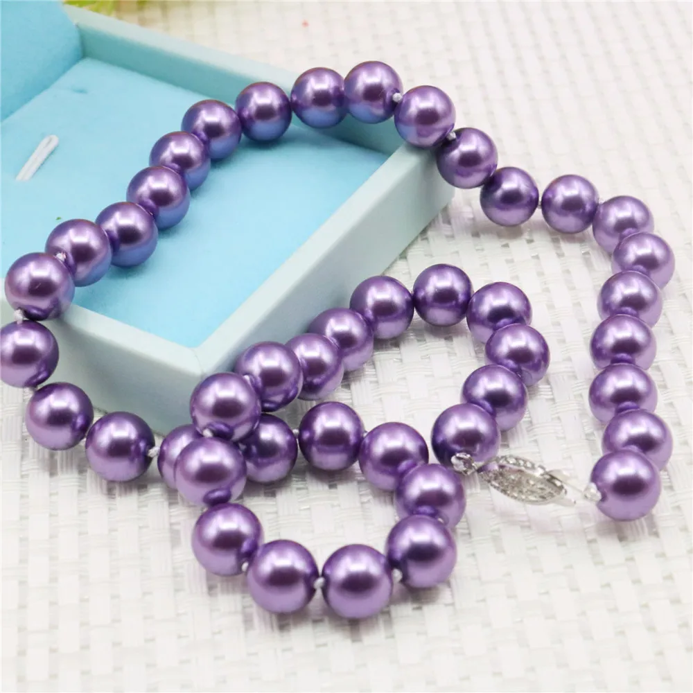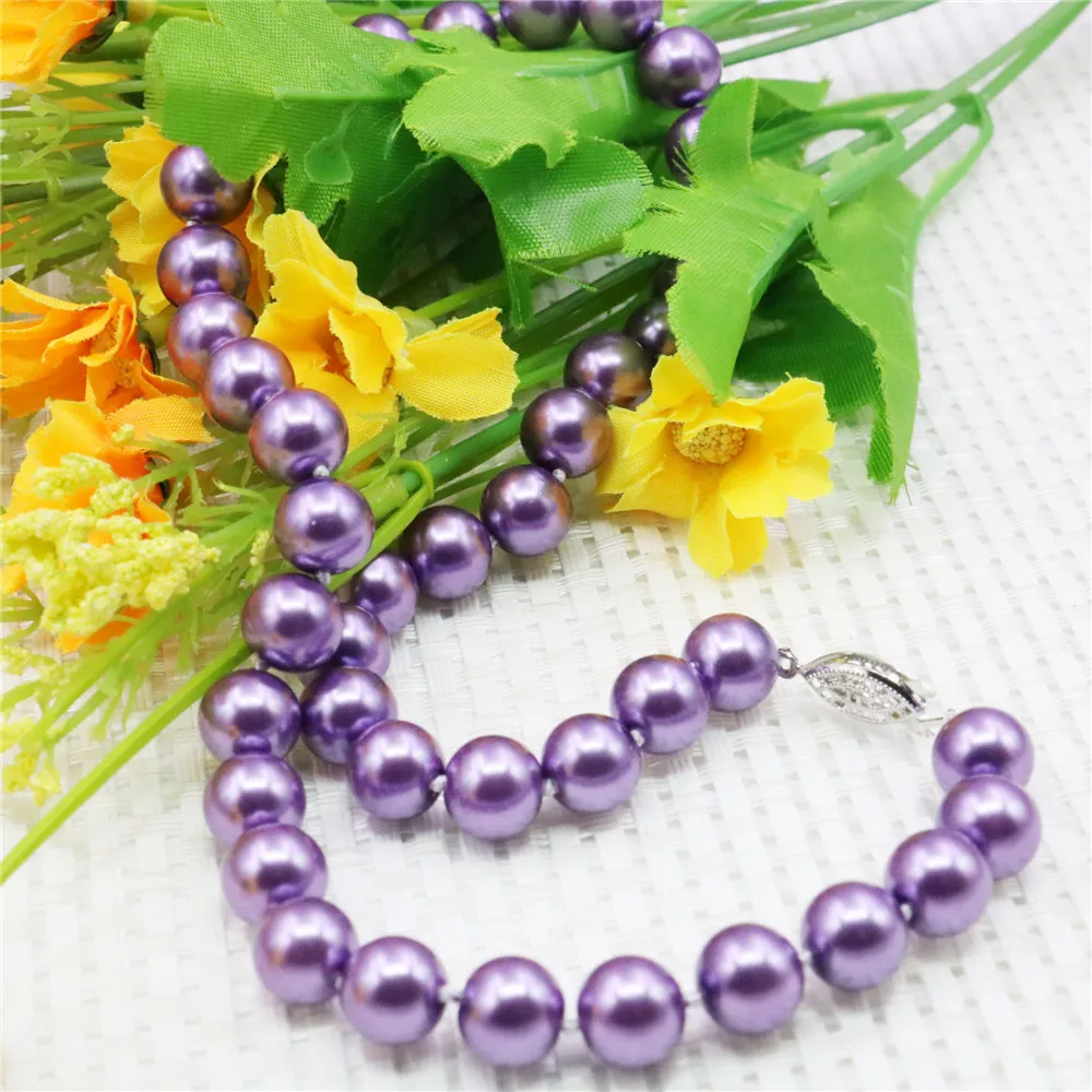 10 мм круглое фиолетовое жемчужное ожерелье...