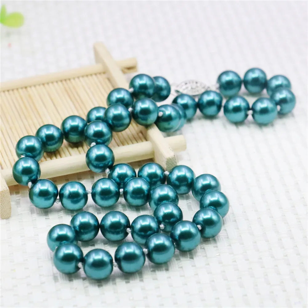 10 мм круглый Небесно-Голубой жемчуг ожерелье женщин Gir...