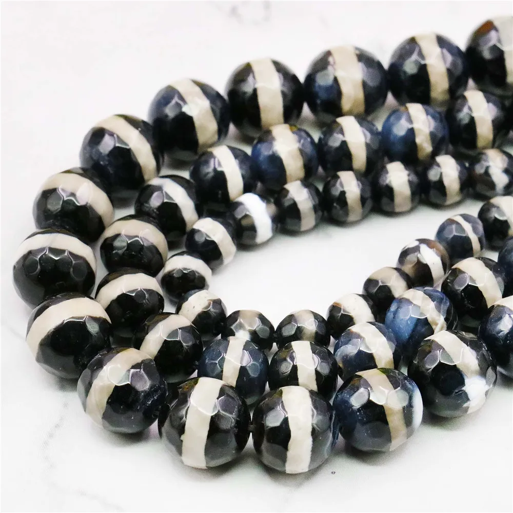 6 8 10 мм Круглые граненые черно-белые зебры
