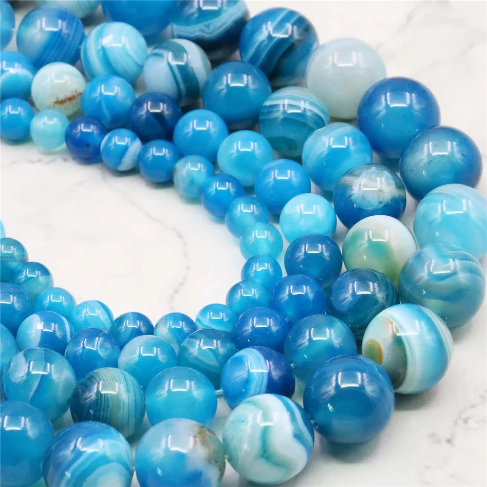 6 8 10 12 мм круглые синие полосы Агат вены дракона свободные...