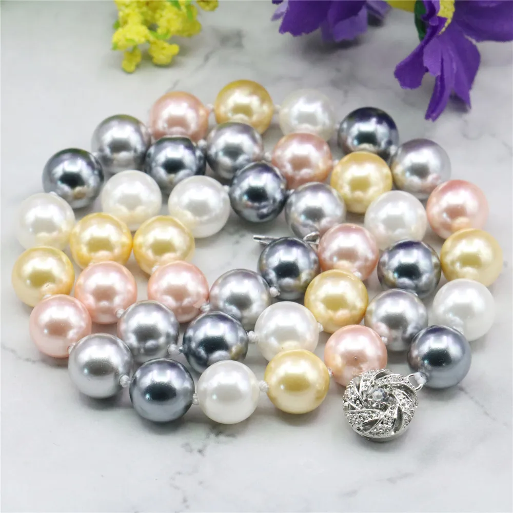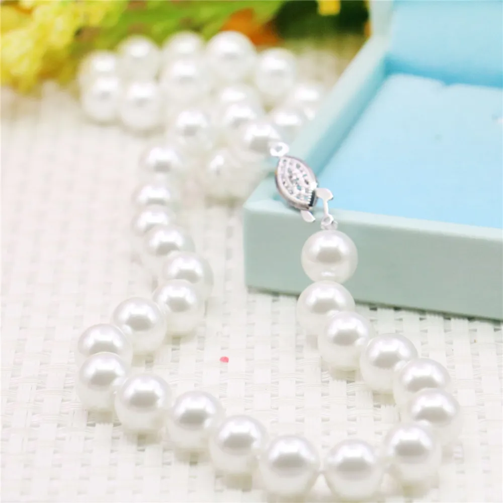 10 мм круглая белая жемчужная раковина ожерелье женщин девушек...