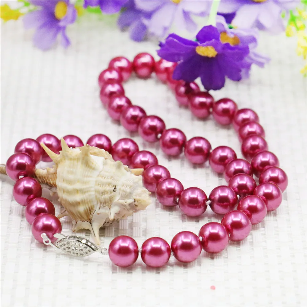 10 мм круглое розовое красное жемчужное ожерелье для женщин