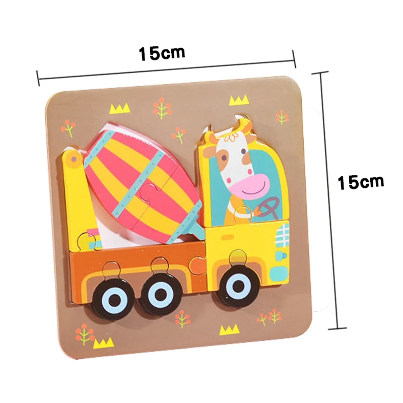 Size is 15*15*1cm. Puzzle pieces thick enough for your kids to pick and place easily which will fit nicely into little hands. Also, these toddler puzzles are safe for children, your baby can't swallow them as it is big enough.