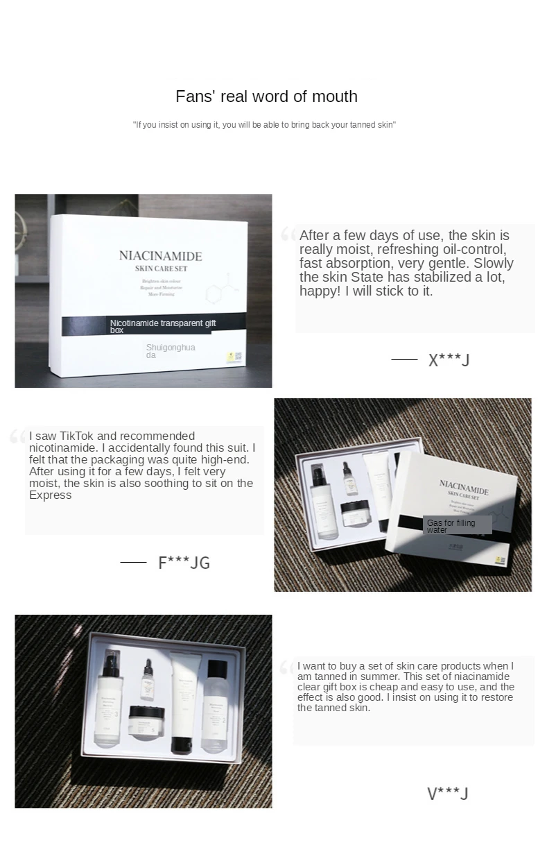 Никотинамид набор для ухода за лицом косметическое очищающее средство для эмульсии тонера тональный крем салон красоты Увлажняющий уход за кожей kitProduct Серия: никотинамид серииБренд: InniFun