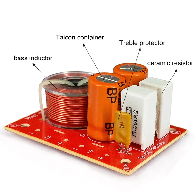 -Высокомощный неполярный конденсатор, низкочастотная часть преобразуется индуктивностью для достижения четкого и полного эффекта.