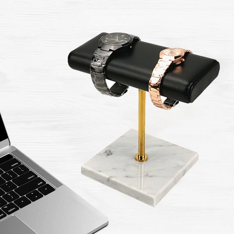 Подставка для часов с белым мраморным основанием, металлический стержень, стойка для демонстрации браслетов, стенд для ремня, удлиненная Подставка для ювелирных изделий