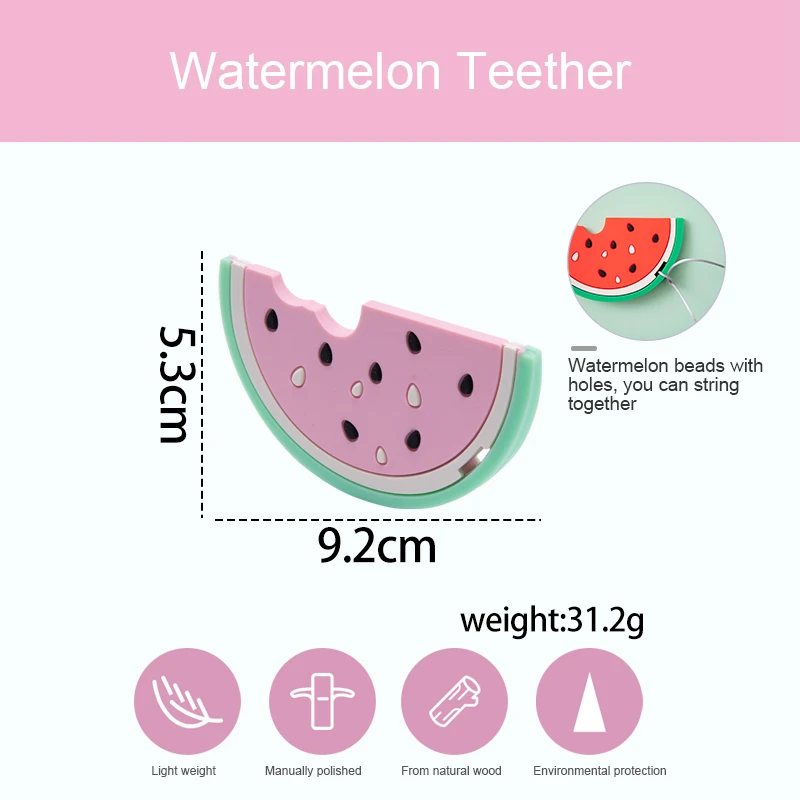 Информация о продукте: силиконовые бусины Материал: силикон Количество: 1 шт. Форма: арбуз Посылка: Детские Силиконовые для прорезывание зубов из бисера Характеристики материала: без BPA, без латекса, без ФТАЛАТА. Если вам нужен сертификат, пожалуйста, свяжитесь с нами и оставьте сообщение по электронной почте Функция: Креативная силиконовая детская игрушка-прорезыватель для прорезывания зубов, любимая детская Производители специально проектируют игрушки для прорезывания зубов, чтобы обеспечить максимальное облегчение, давая ребенку что-то безопасное и веселое, чтобы играть с Эти силиконовые детские игрушки имеют мягкие, текстурированные поверхности, которые массируют десны, когда зубы начинают проходить