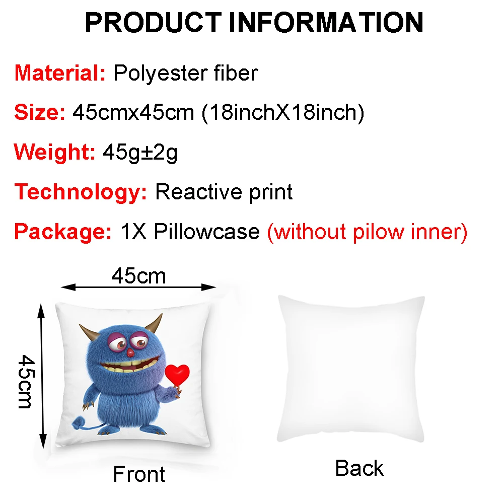 Тип товара: наволочка Материал: полиэстер Рисунок/Цвет: как показано на фото Размер: 45*45 см (прибл. 18*18 дюймов) Использование: для дома/дивана/кровати/машины Сезон: весна, лето, осень, зима Комплектация: 1 наволочка для подушки