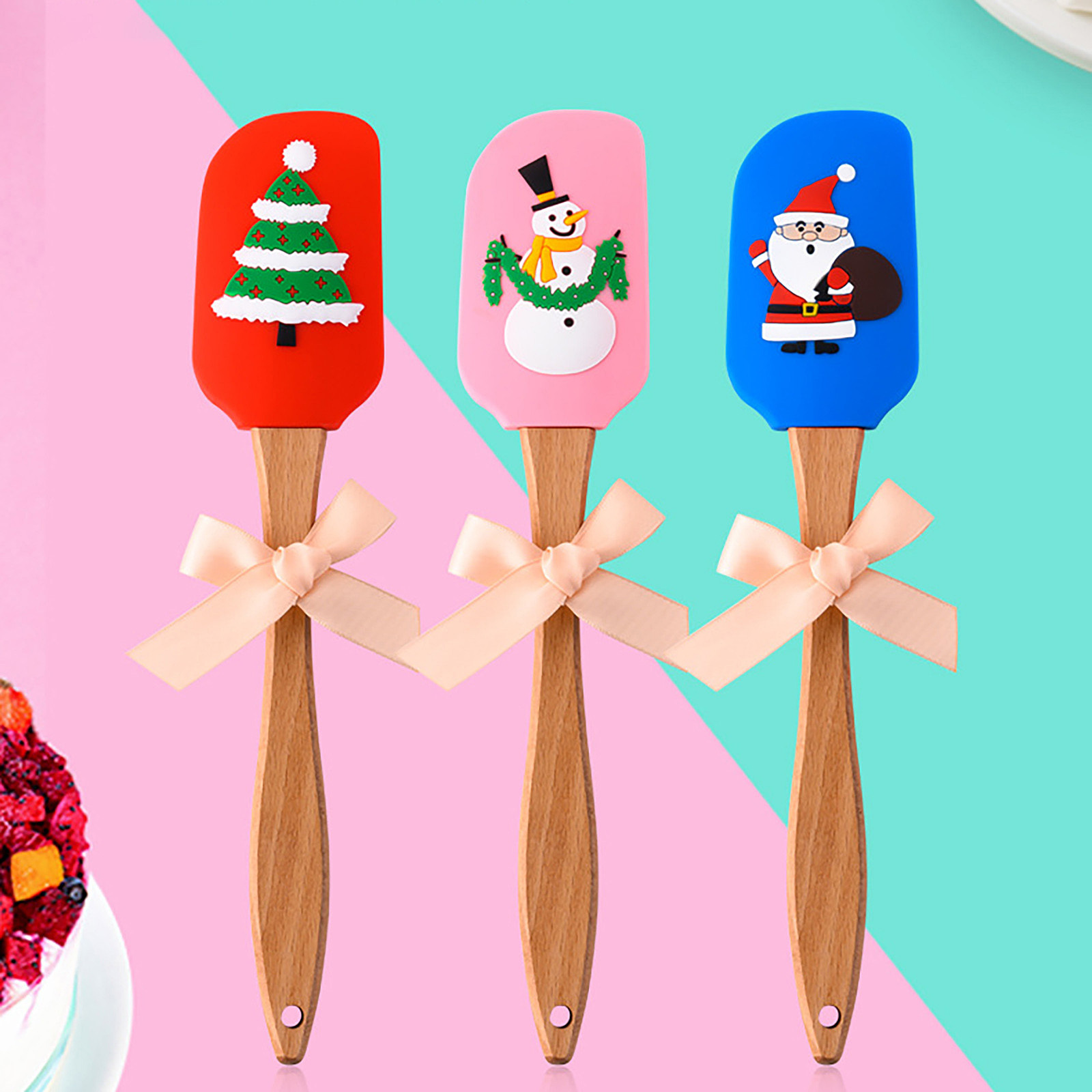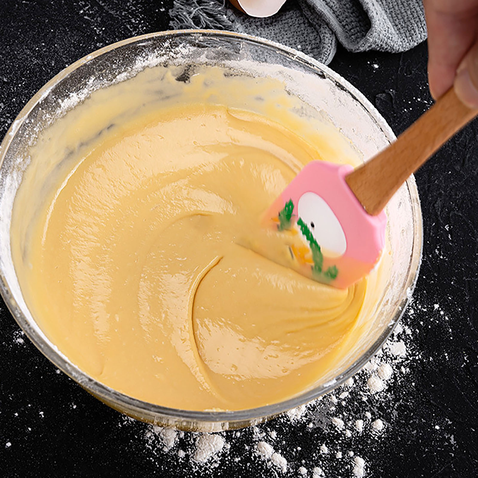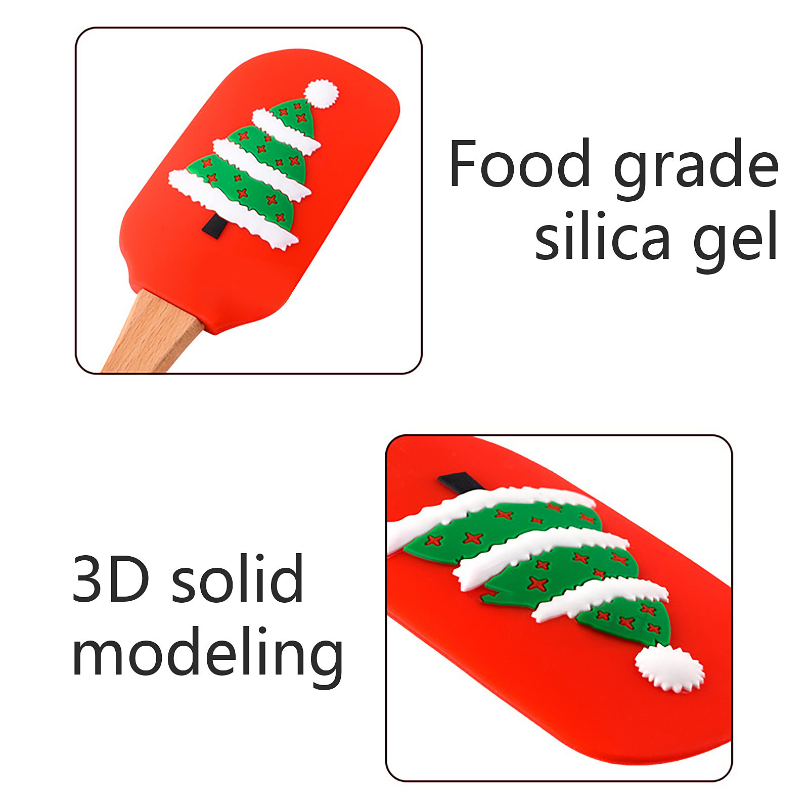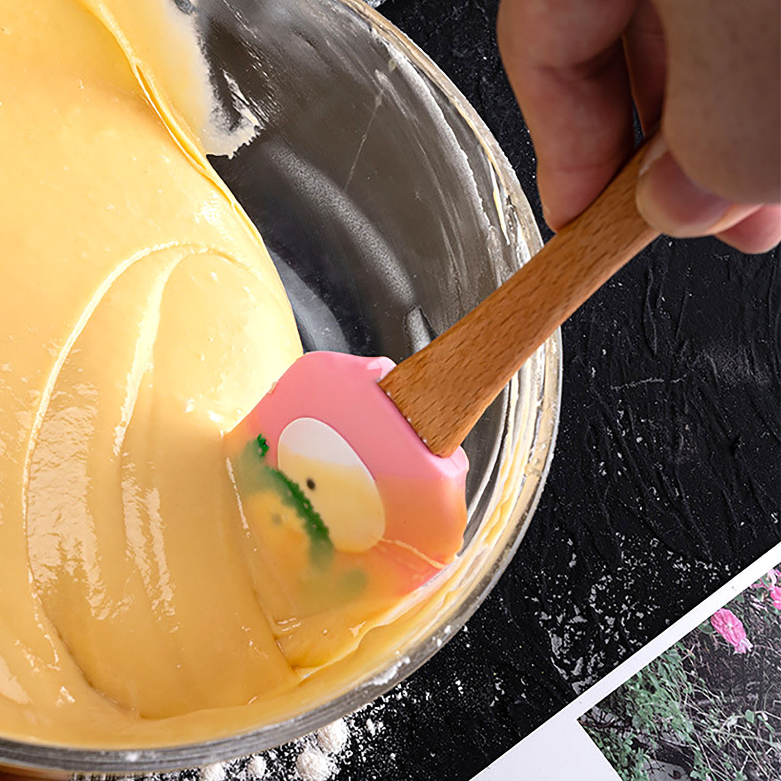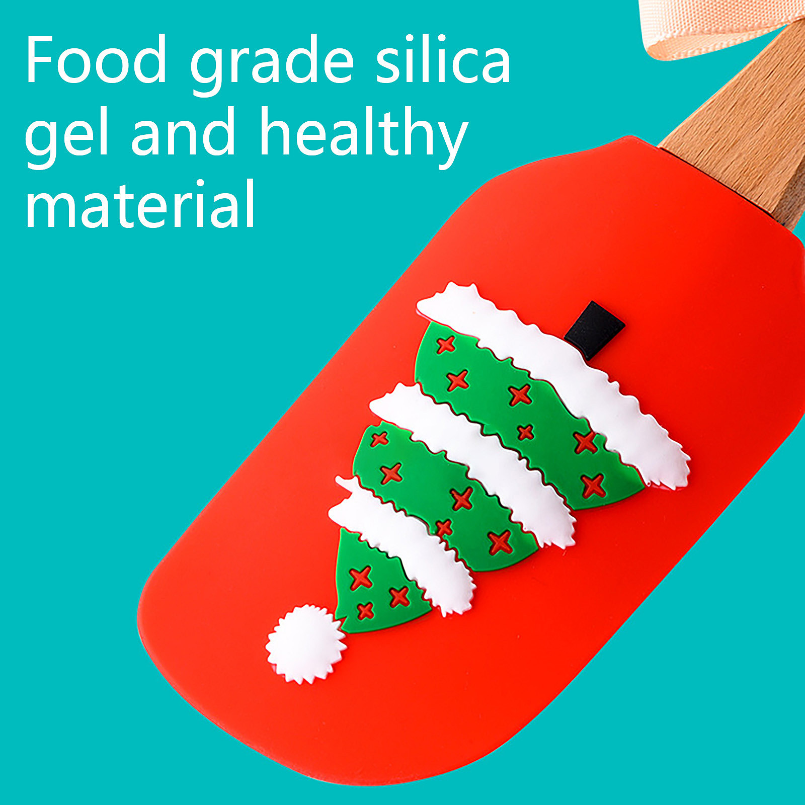 1. Flexible FDA food grade silicone spatula, the working temperature lasts from minus 30 degrees Celsius to 230 degrees Celsius. With 100% natural beech wood handle and holes for hanging