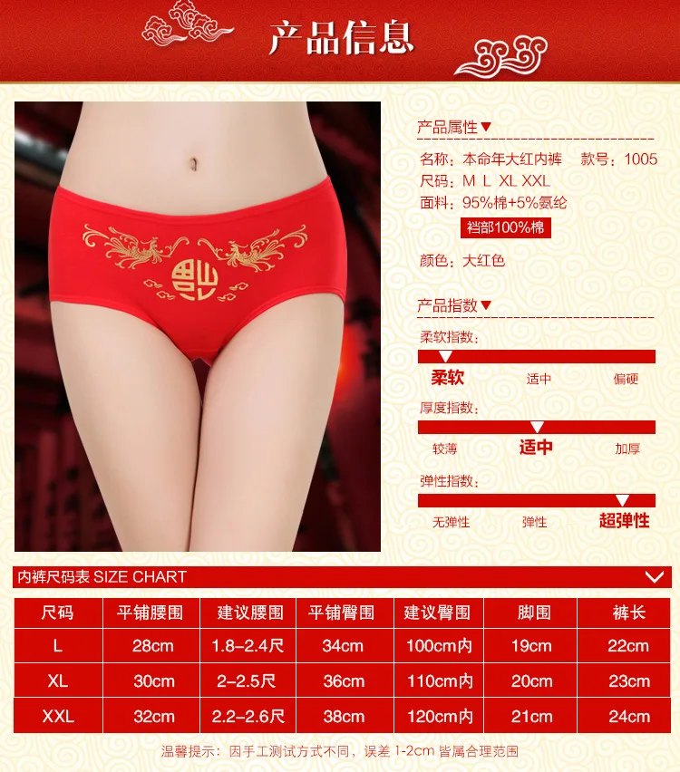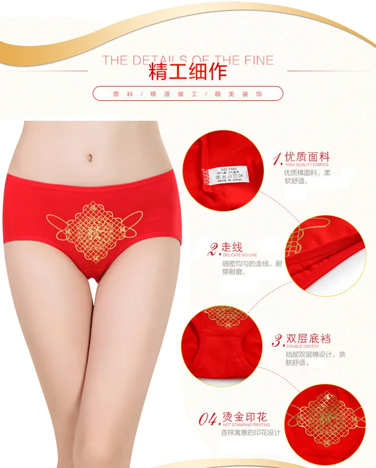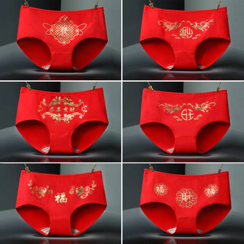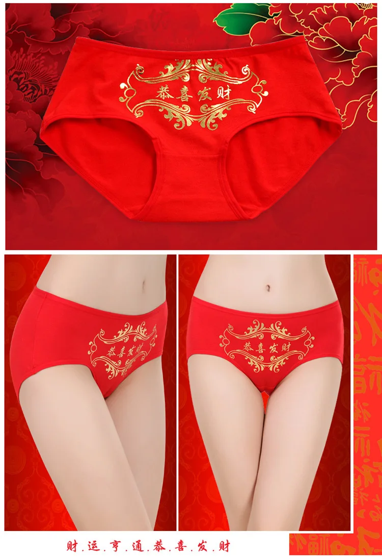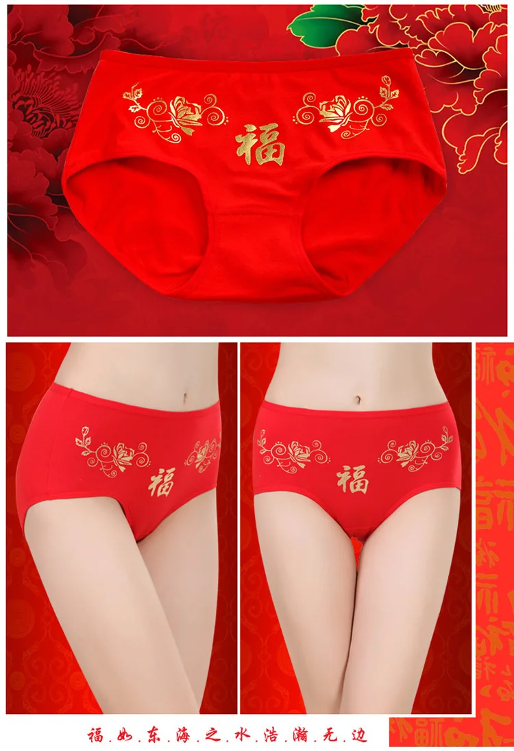 Красные трусы со средней талией, с надписью FA CAI FU, нижнее белье для женщин, больших девушек, мягкие трусы