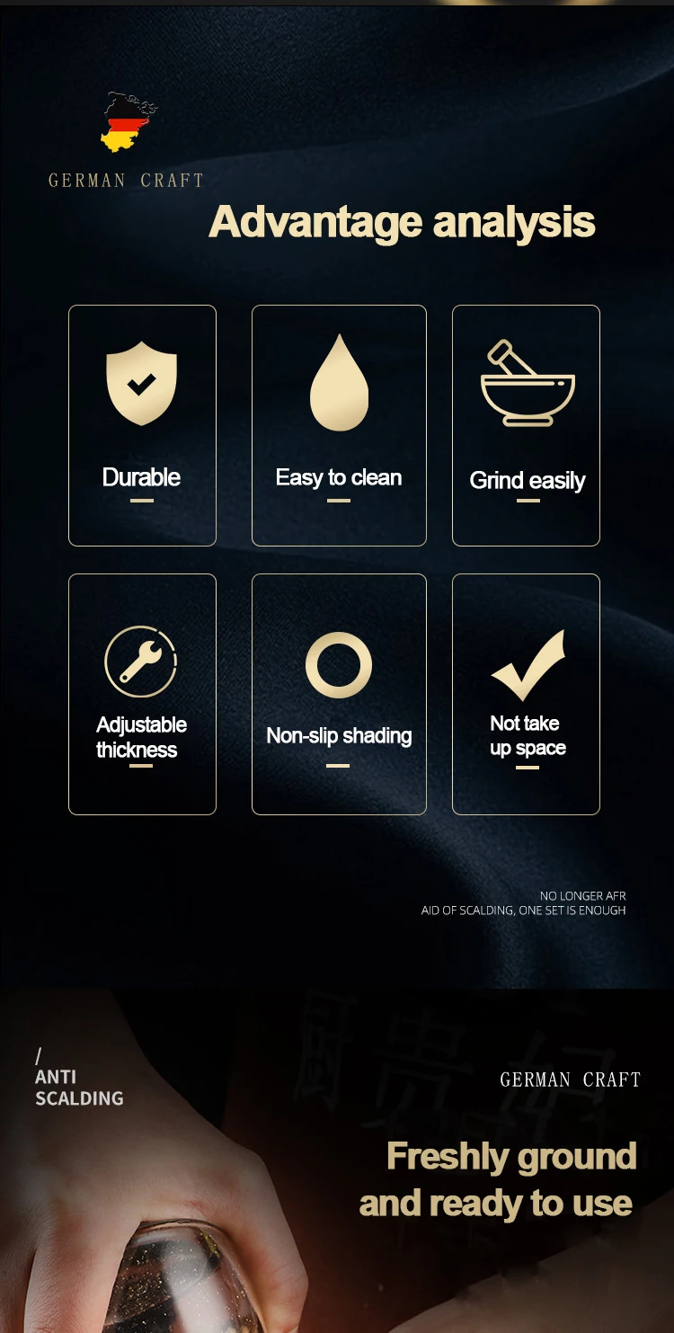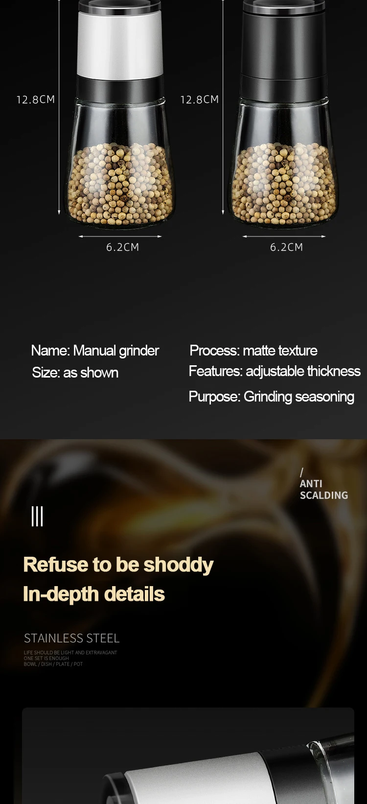 Название: ручная шлифовальная машина Материал: полипропилен + стекло + керамический сердечник Процесс: матовая текстура Особенности: регулируемая толщина Назначение: измельчение приправ