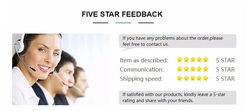(2). Если вы удовлетворены нашей продукцией, пожалуйста, дайте нам оценку пять звезд. Спасибо.
