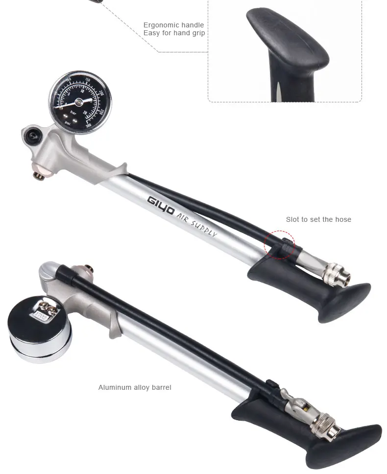 Type-B Ressibi 150PSI Bicycle pump Air inflator pump for bike tire ballon ball mattress Hige Pressure Pump+Gauge *compact and lightweight*cnc machined aluminium alloy*fast and easy tire inflation*hight pressure-150psi/10.5 bar*flexible hose design for easy pumping*intergratible pressure gauga for perfect inflation*compatible with presta and schrader valves*Mounting braket included to atten pump to bike.