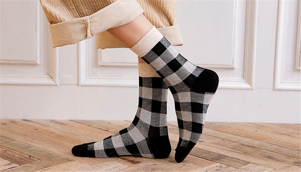 . Colorful plaid checkered dress socks, simple and stylish, fashion trends, we're confident that you'll love these socks . Material: 81%Cotton, 12%Spandex, 7%Polyester (Lightweight, comfortable and breathable) . Size: US 5-9; UK 4-8; EU 35-43 (The size is manually measured, there is an within error 3%, please understand) . Applicable: Suitable for any casual occasion and season, they will add a unique punch to any outfit, from business suits to casual jeans. This is also the best gift for our friends and relatives . Reminder: Machine washable, cold water wash, no bleach