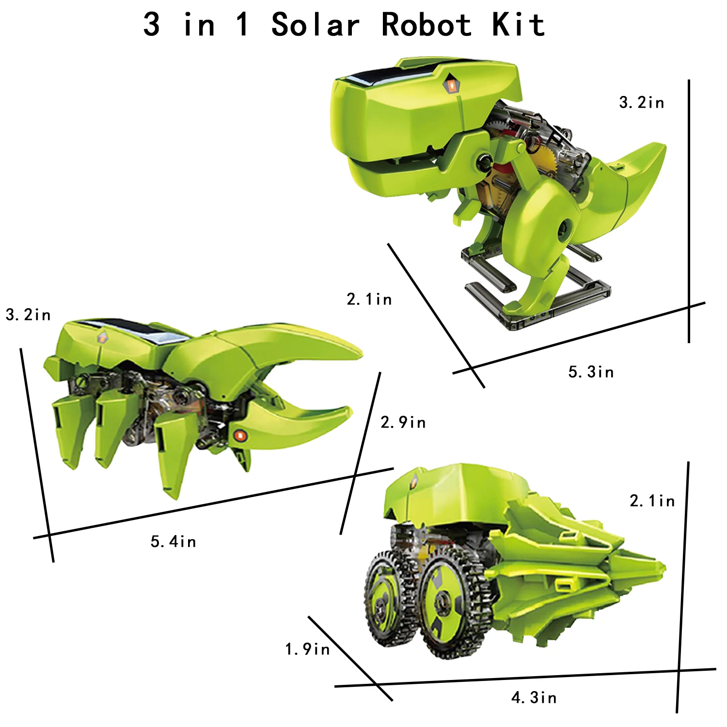 С набором деталей (в общей сложности 190 штук), комплект солнечных роботов CIRO может построить 11 различных типов гидро-механических Роботы на солнечных батарейках, включая 7 моделей животных и 4 модели автомобилей: Слон, крокодил, обезьяна, птерозавры, Страус, Скорпион, собака-ходунки, багги, препятствия, избегающие Ровер, экскаватор, вилочный погрузчик. В то же время ваш маленький инженер может использовать свое воображение, чтобы создать своего собственного оригинального робота.