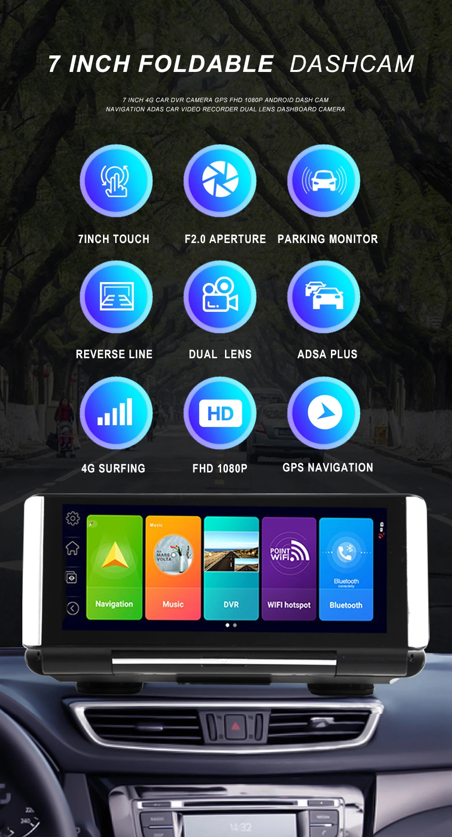 Путешествие за рулем скучно? Теперь начните Интернет-серфинг 4G с помощью нашего видеорегистратора Bluavido, он встроен в точки доступа Wi-Fi, будет синхронизировать и делиться данными Интернета с вашим смартфоном, наслаждаться чтением, навигацией, музыкой онлайн для удовольствия.