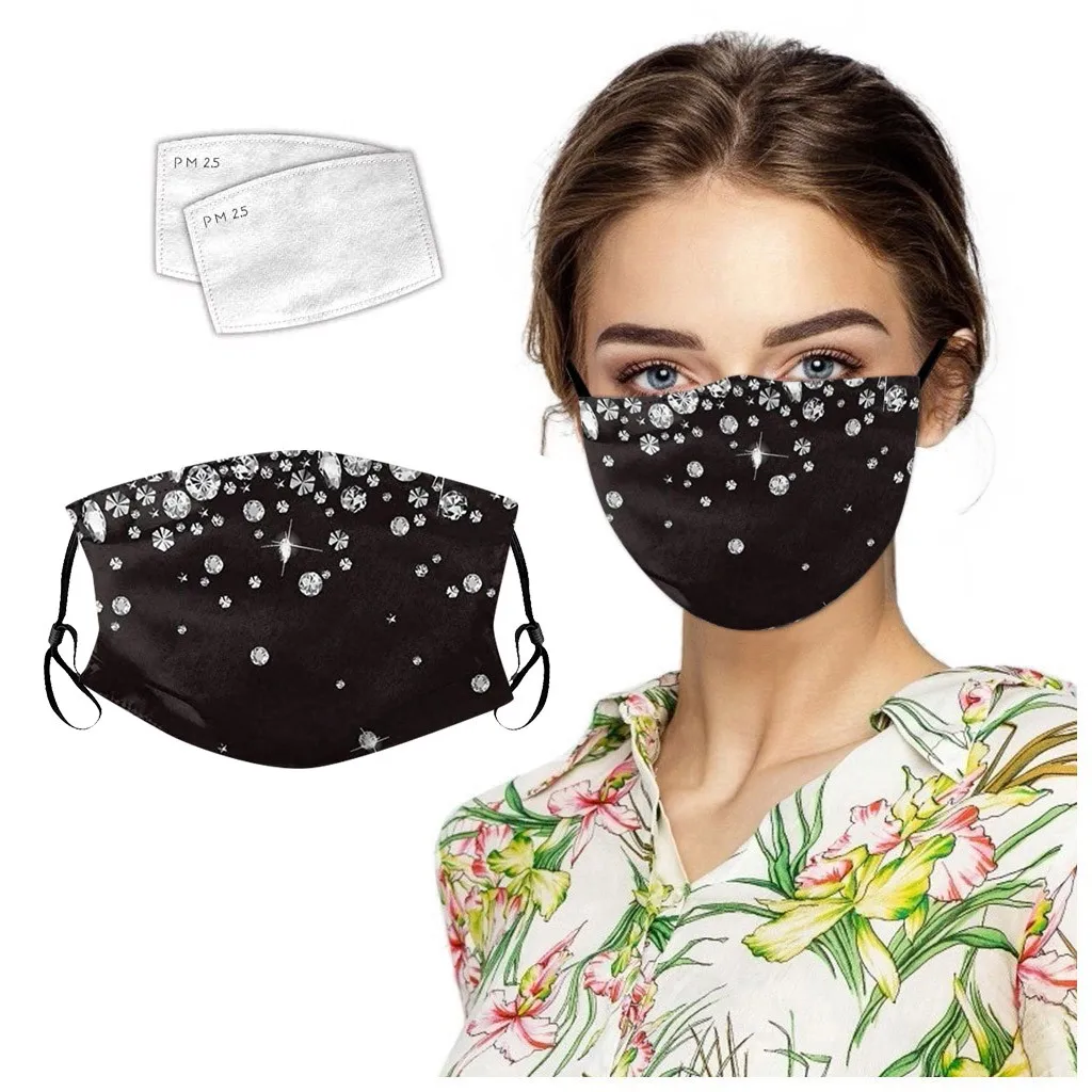 Особенности: НовинкаМаска изготовлена из высококачественного материала, что делает ее мягкой и удобной для вашего лица, она очень дышащей. Примечание: изображения напечатаны, а не настоящие бриллианты. С этой маской для лица вы можете быть защищены от мелких частиц на воздухе и многого другого. Без запаха; Можно стирать и использовать повторно. Один размер подходит для большинства: можно носить отдельно или под любым шлемом. Плотно прилегает, но не слишком туго, легко ложится по лицу и возвращается к первоначальной форме после растяжки. Широкое применение: Наши маски идеально подходят как для женщин, так и для мужчин, они подходят для езды на велосипеде, кемпинга, бега, путешествий, скалолазания и повседневного использования. Это будет необходимым предметом для езды на велосипеде, кемпинга, путешествий. Эта хлопковая маска для лица моется и может использоваться повторно. Стирка водой и нежный скраб, ее можно носить снова после сушки. Посылка: 1 маска + 2 фильтра