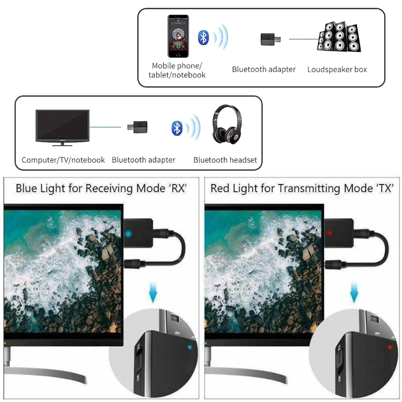 4. Это аудио-приемник Bluetooth, а также аудио-передатчик Bluetooth, а также может использоваться как звуковая карта Bluetooth, которая легко конвертируется и проста в эксплуатации.