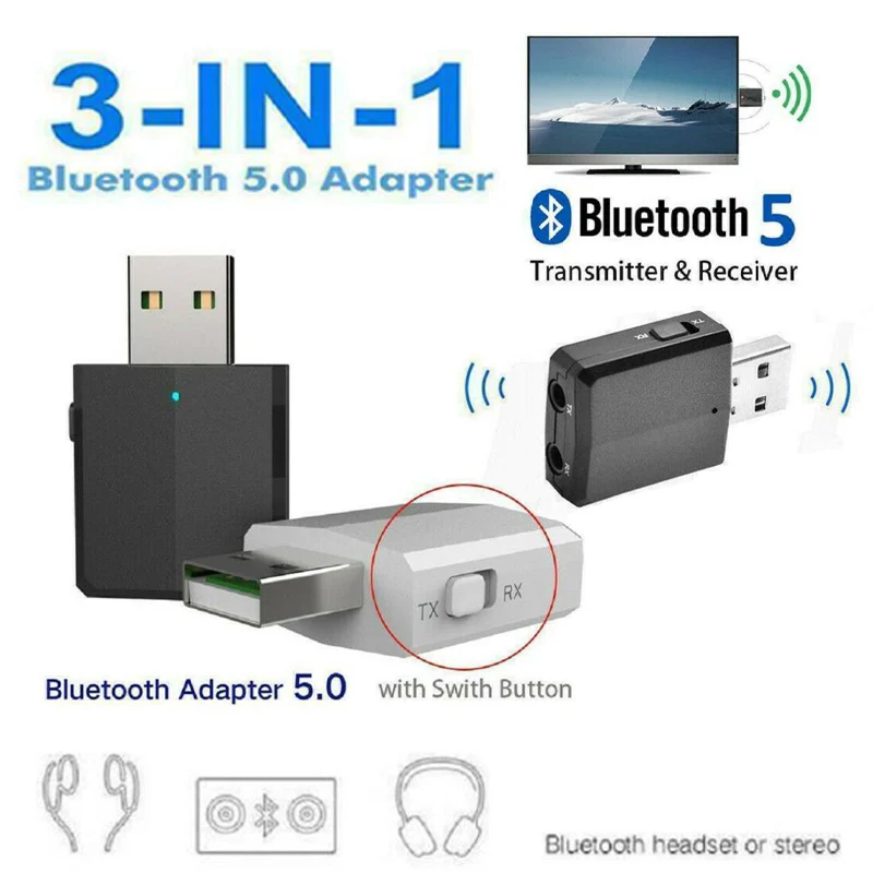 3 в 1 USB Bluetooth 5,0 аудио передатчик/приемник адаптер для ТВ ПК наушники