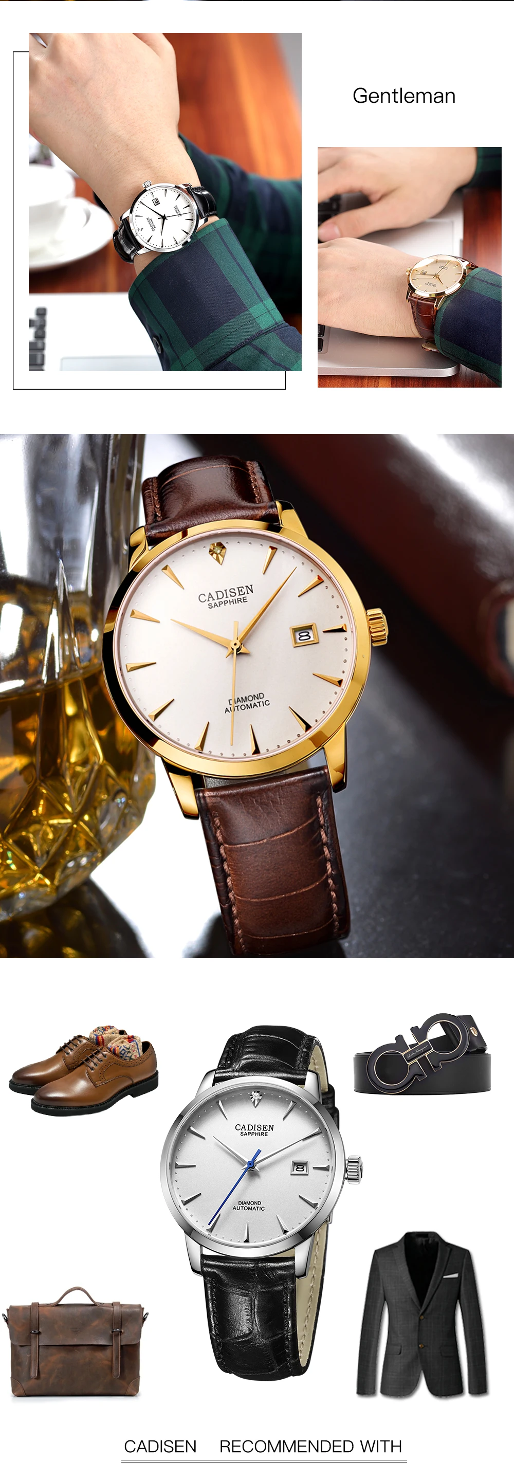 CADISEN мужские часы автоматические механические наручные часы MIYOTA 9015 Топ бренд Роскошные настоящие бриллиантовые часы изогнутые сапфировые стеклянные часы