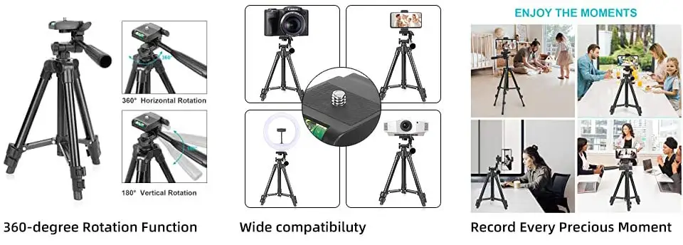 【 Многофункциональная 】 3-ходовой поворотный полукруглвая головка с пузырьковый уровень обеспечивают 360 градусов вращение панорамы, позволяет поворачивать под любым углом горизонтально и вертикально. Поставляется с универсальным держателем для телефона, совместимым с iPhone и Android.