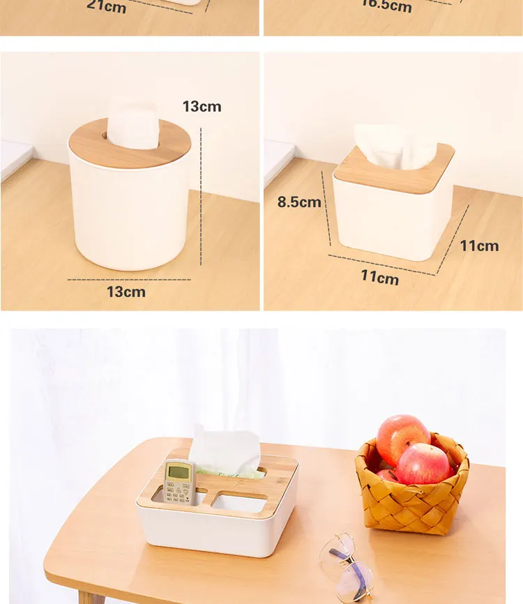 Tissue box is solid color design, with a wooden cover, elegant and fashionable, can easily match with your home style.