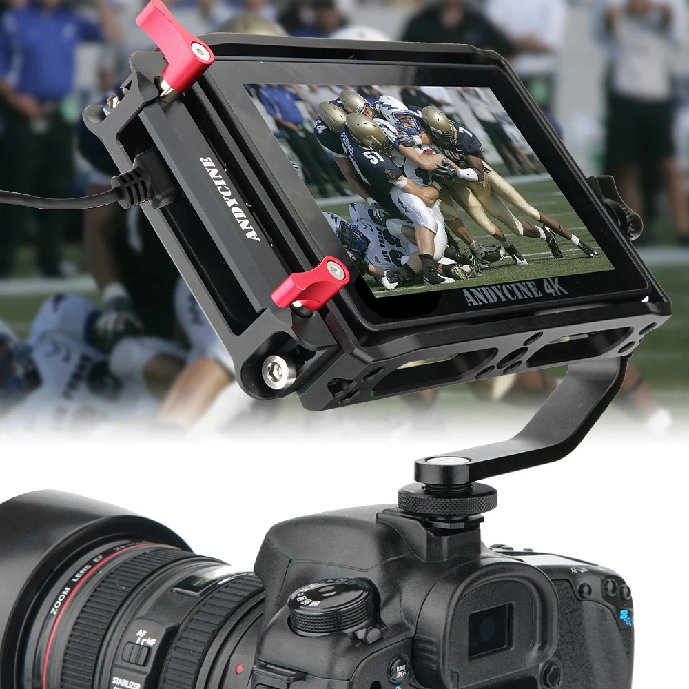 Клетка для монитора Andycine 5,5 дюйма включает в себя два винта 1/4 дюйма сверху и снизу, чтобы предотвратить падение монитора в съемку. Зажим кабеля HDMI надежно фиксирует ваш кабель HDMI и предотвращает его Переключение или повреждение.