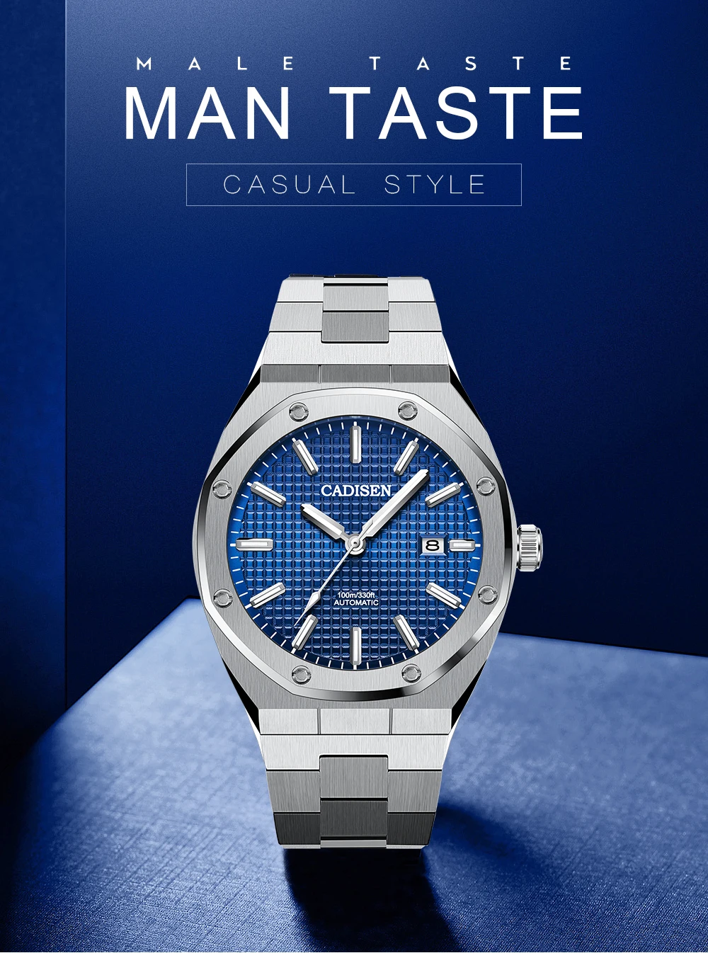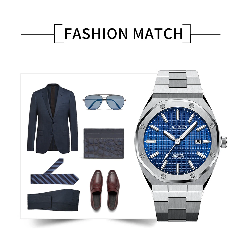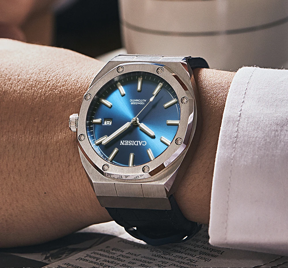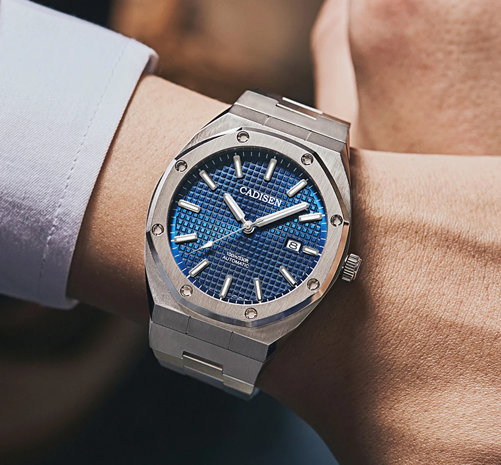 Часы наручные CADISEN NH35 Мужские механические, люксовые механические Автоматические синие водонепроницаемые повседневные деловые светящиеся, 100 м