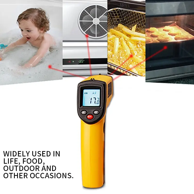 <Широкое применение: Может использоваться для измерения температуры поверхности труб горячей воды, частей горячего двигателя, кухонных поверхностей, горячих труб и изоляции и многого другого.