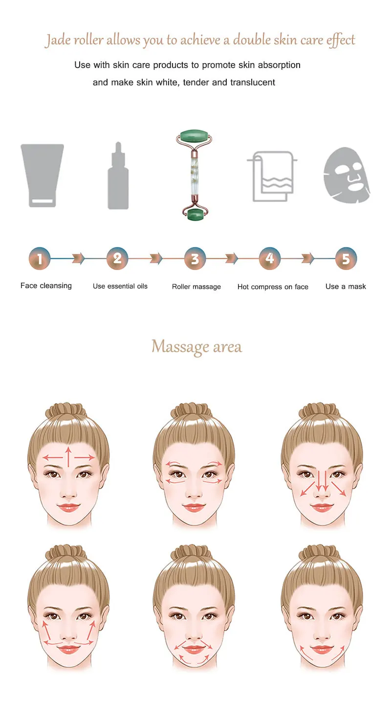 1. Вымойте лицо обычными чистящими средствами. 2. Нанесите любой ночной крем на лицо и шею. 3. Двигайтесь вверх и аккуратно перемещайте jadeite ролик вокруг лба, щеки, губ и шеи. Если ваши глаза пышные или пышные, закройте глаза и аккуратно закатайте на веки. 4. Используйте ролик на лице и шее в течение 5-10 минут. 5. Три раза в неделю Используйте нефритовые ролики для уменьшения тонких линий и морщин.