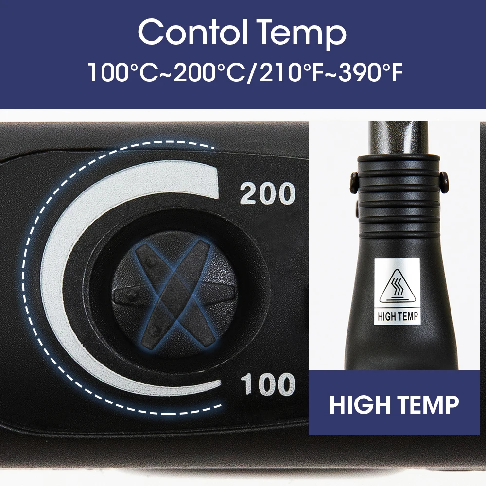 8. Температура: дисплей от 100 до 220 °C, соответствует различным температурам плавления различных гул