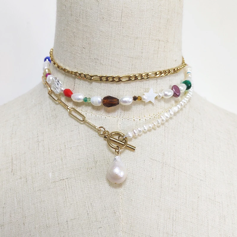 Богемное женское очаровательное жемчужное ожерелье ручной работы с хрустальными бусинами смешанные и подходящие модные дикие чокер цепечка на шью женская 2021