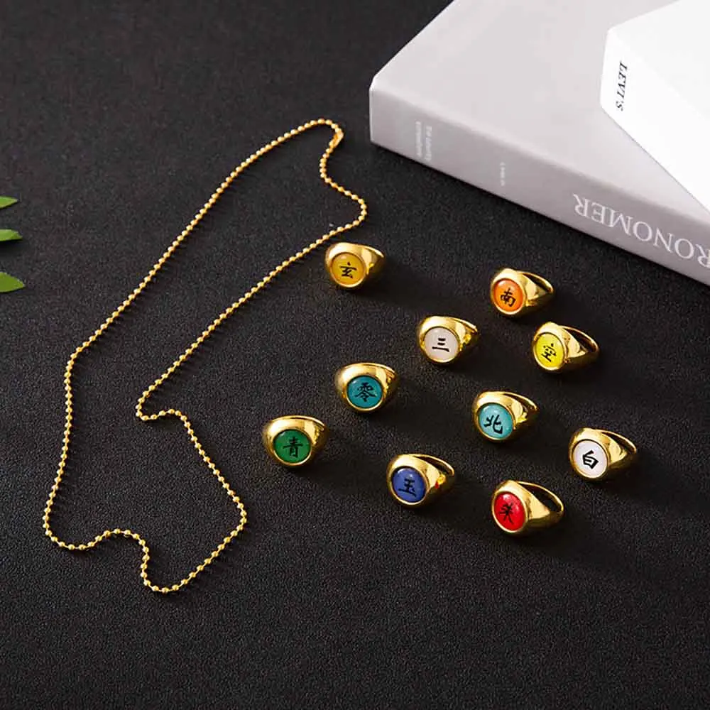 Lateefah 10 стиль аниме HOKAGE Naruto Akatsuki Косплей кольца серебро Sasori Itachi Hidan Deidara Pein Золотое кольцо аксессуары опора