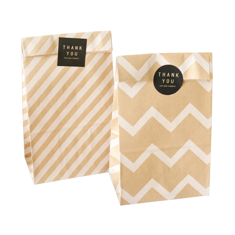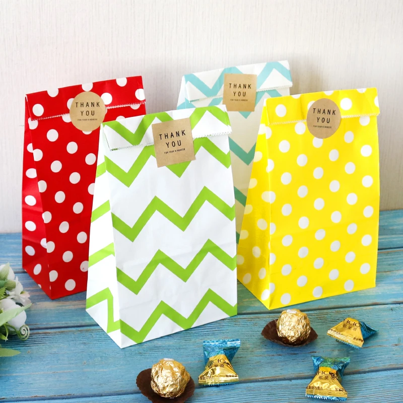 10 комплектов, бумажные пакеты из крафт-бумаги, зигзаг, в горошек, пустые, в полоску, стоячий Подарочный пакет, Красочные вечерние сумки для конфет, Сумка с наклейкой
