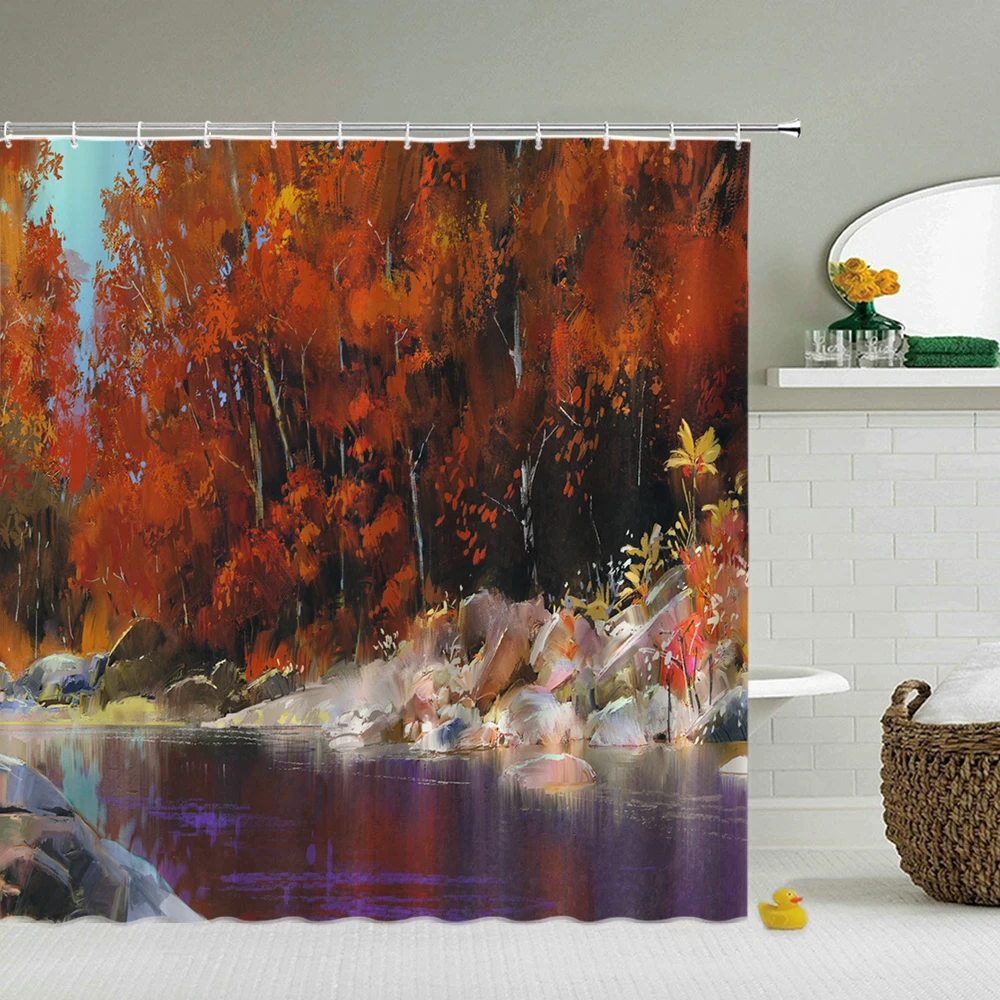 Занавеска для душа с природными пейзажами, водонепроницаемая занавеска для ванной, Рождественская занавеска для ванной, большой размер, занавеска для душа с крючками